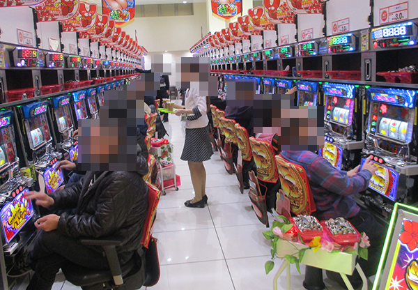 通路からトイレにいたるまで、ホール内はどこをみてもピカピカ。タバコのニオイも気にならないため、快適にすごせると感じた。