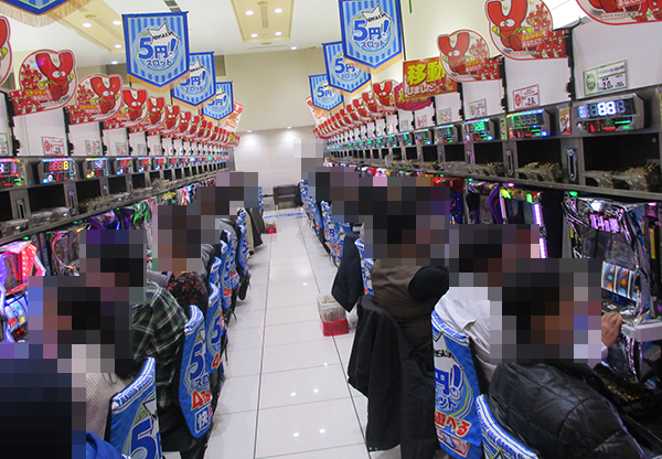 午後の20円パチスロでは、「沖ドキ!」の盛り上がりが大きい。機種の性能を存分に引き出せているといったプレイヤーからは、満足度の高さが伝わってきた。