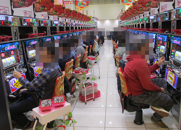20円パチスロのなかで、とくに目立っていたのが「沖ドキ!」。ポテンシャルを発揮できているようなプレイヤーからは、充実した時間をすごせていることも伝わってきた。