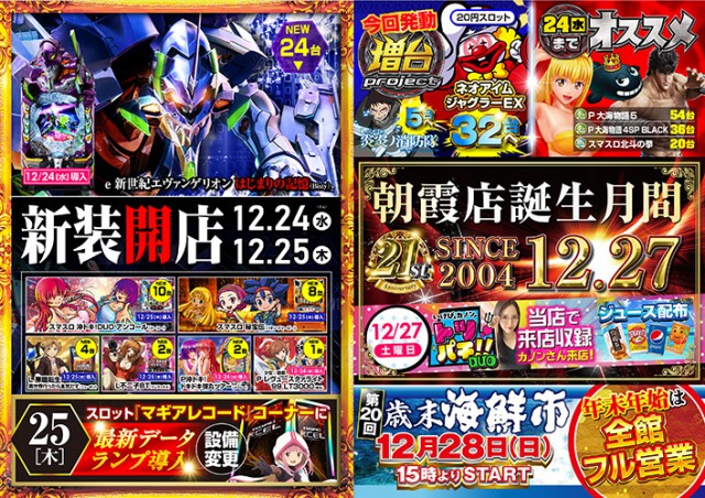 24&25日今年最後の新装開店!そして27日ミリ朝21周年!