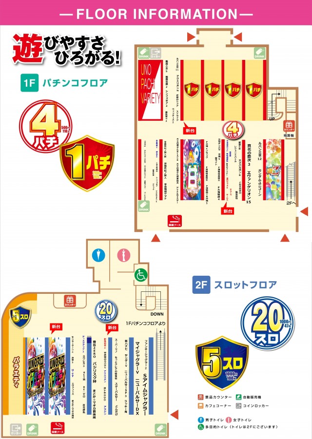 パチンコ: [4] [500円/115玉] [1][200円/184玉] パチスロ:[1000円/46枚] [1000円/184枚] |