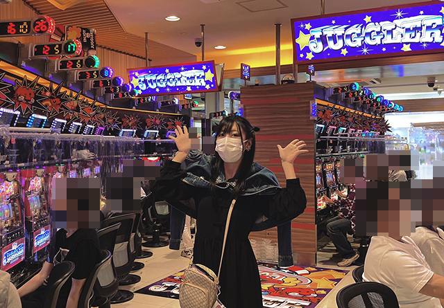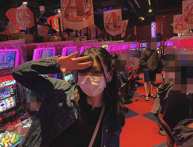 くうかちゃんも新台から定番機種、パチンココーナーまで、たくさんのシマに注目★ みなさんの活躍を楽しそうに眺めていました( ´∀`)
