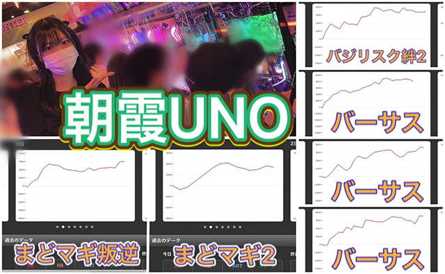定番機種からバラエティコーナーまで、くうかちゃんがさまざまな機種に注目したのが「朝霞UNO」!
