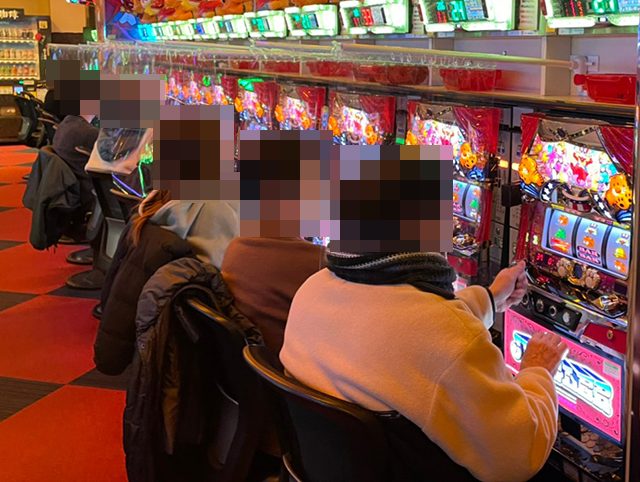 楽しげなプレイヤーがズラリとならんでいたのが「マイジャグラーV」!