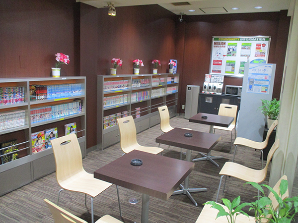 広々としたレストスペースには、漫画や電子レンジ、携帯電話の充電サービスなどの設備も充実。