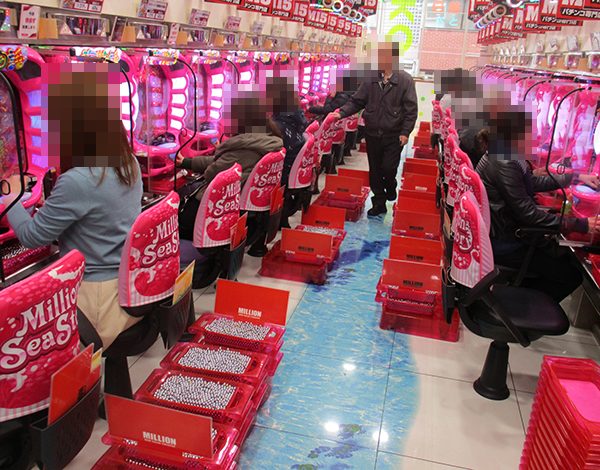 1円パチンコや0.5円パチンコもたくさんのプレイヤーでにぎわっていた。