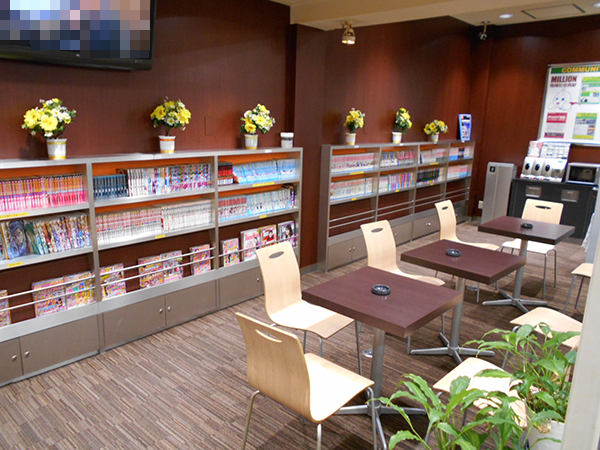 広々としたレストスペースには漫画や雑誌などのアイテムが豊富に取り揃えられている。