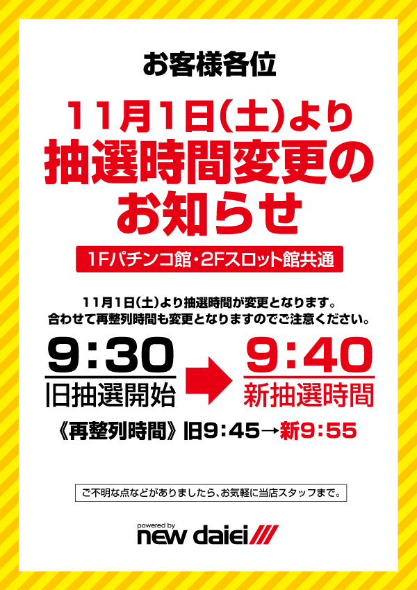 明日23日★新装×DAIEI Ⅲ★10時開店/9時半抽選開始