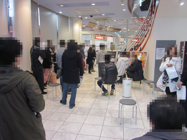 朝イチは9時40分までの間に来店すると入場整理券が配布される。この日は30名ほどが集まり、注目の大きさを感じることができた。ちなみに9時40分以降に来店したプレイヤーは別の入口からの入店となっている。