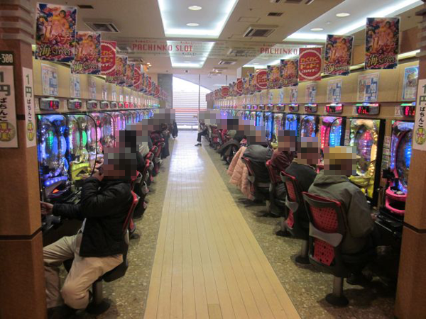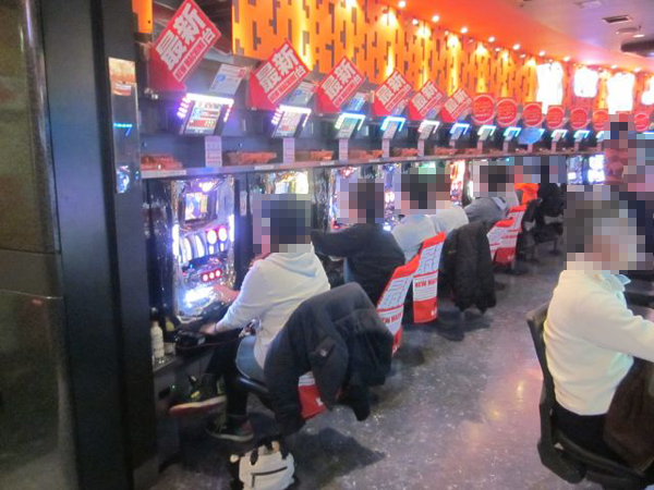 「押忍!サラリーマン番長」や「サラリーマン金太郎 出世回胴編」などにもたくさんのプレイヤーが集まっていて、AT機の人気ぶりを感じた。