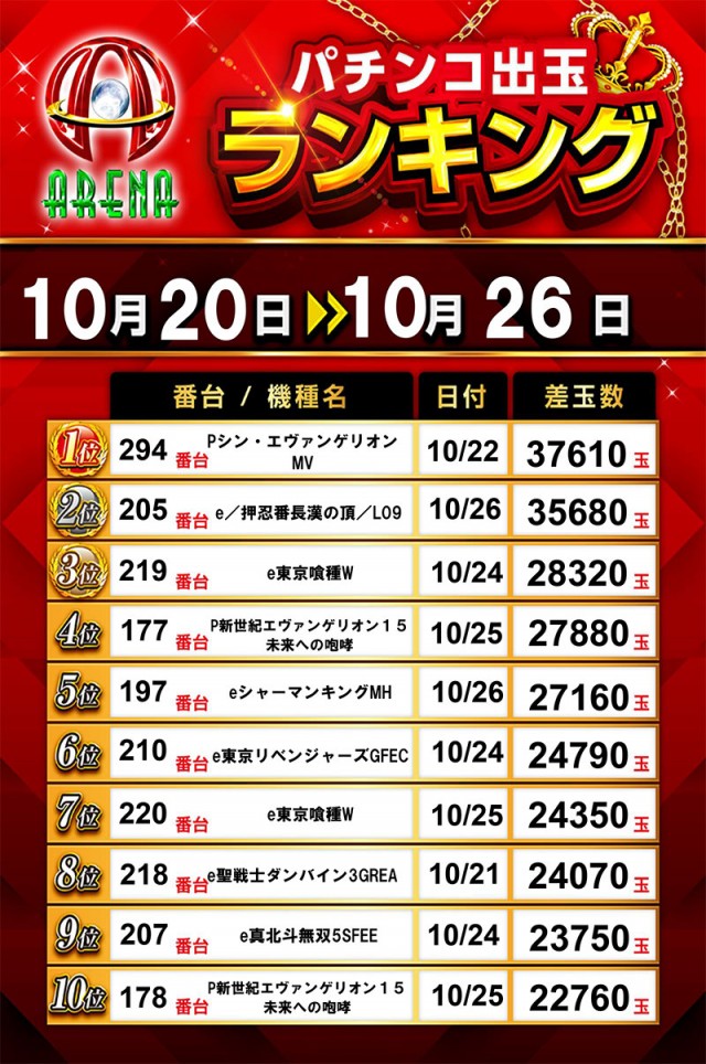 AM:10:00~22:45 新台入替前日は15時開店 |