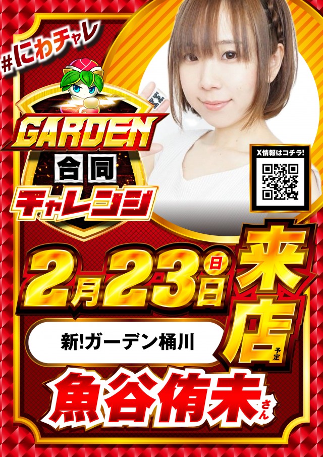 ⚡新!ガーデン桶川⚡since.2020.07.22⚡明日⚡⚡2月23日(土)⚡GARDEN合同チャレンジ10時開店予定‼⚡日本プロ麻雀連盟で活躍中⚡⚡魚谷侑未さん来店予定‼⚡入場抽選9:40~