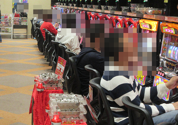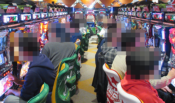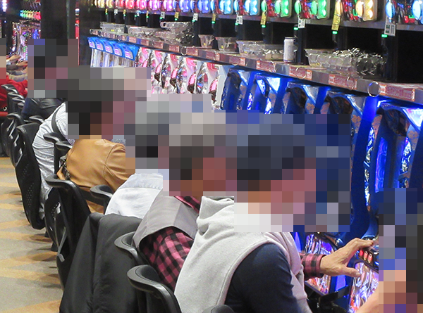 低貸し玉コーナーのなかでは、設置台数の多い1円パチンコがもっとも活気づいており、じっくりと楽しめている様子のプレイヤーも多かった。