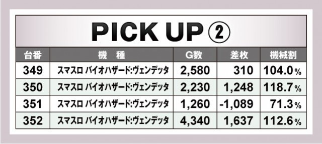 なお、差枚数トップは『北斗』の318番台。こちらから+9,651枚と万枚一歩手前の出玉となっている。次点も『北斗』の341番台から+5,724枚なので、『北斗』メインの「英雄」になったのではないだろうか。