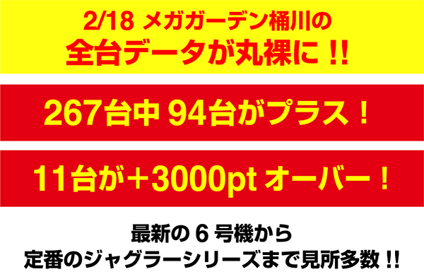 2月18日の「メガガーデン桶川」は267台中94台がプラス。
