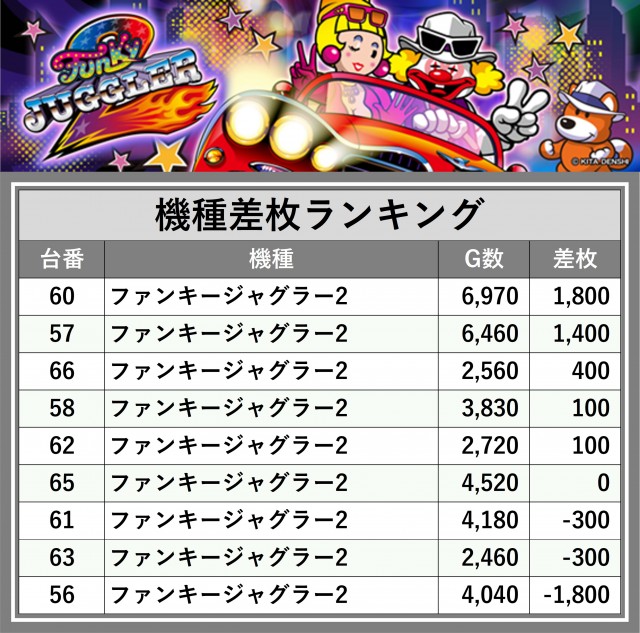 ※差枚数順に掲載しています