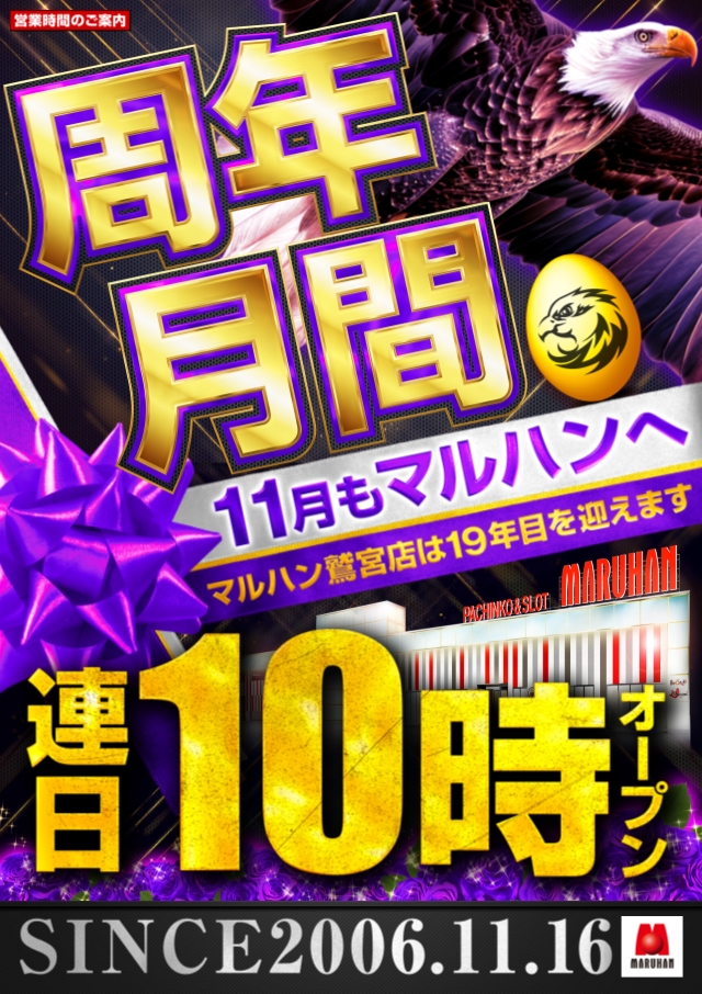 【マルハン鷲宮店】9日10時 新装開店(予定)最新機種導入