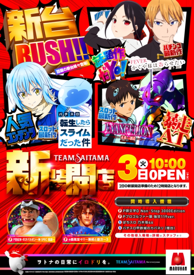3日(火)新装開店予定!最新台導入!!10時開店!