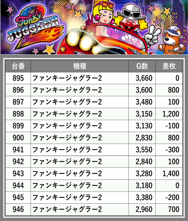 ※台番順に掲載しています