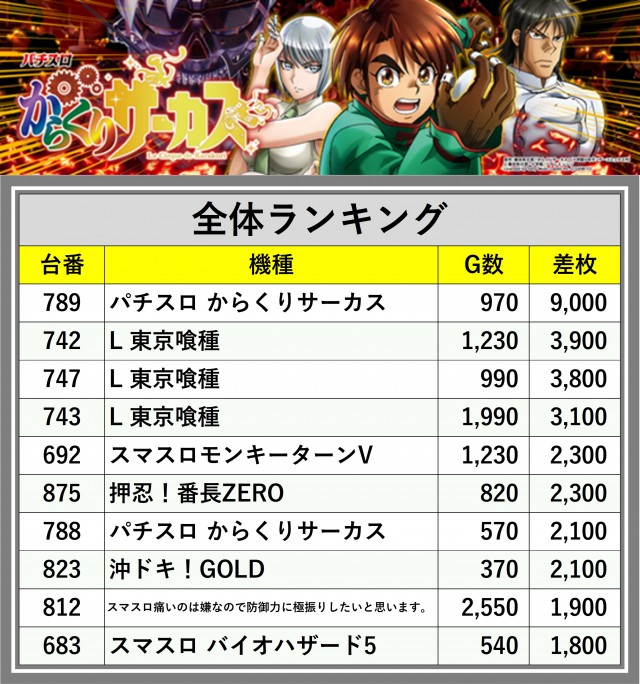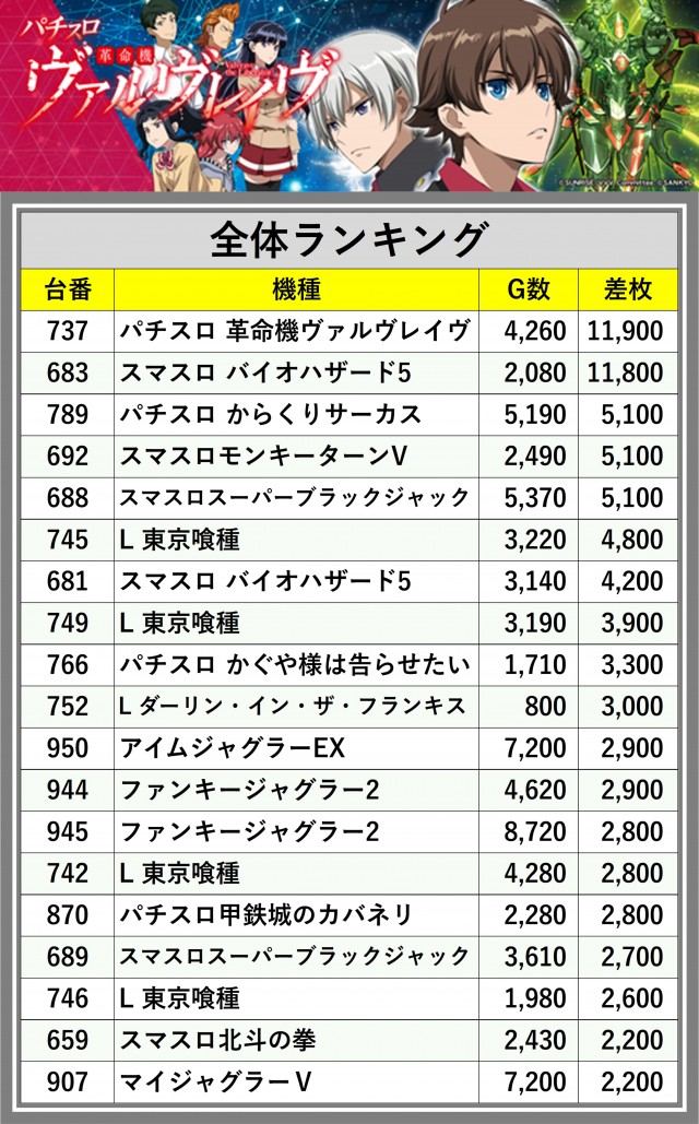 ※差枚数順に掲載しています