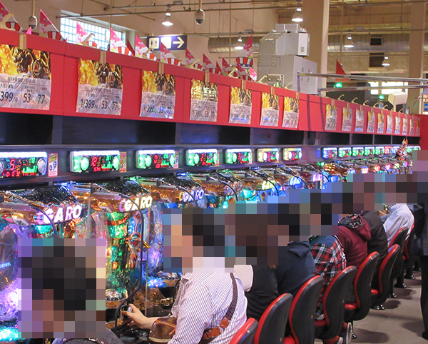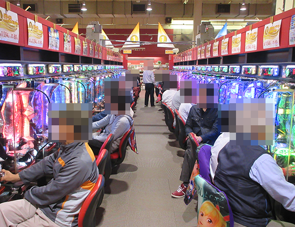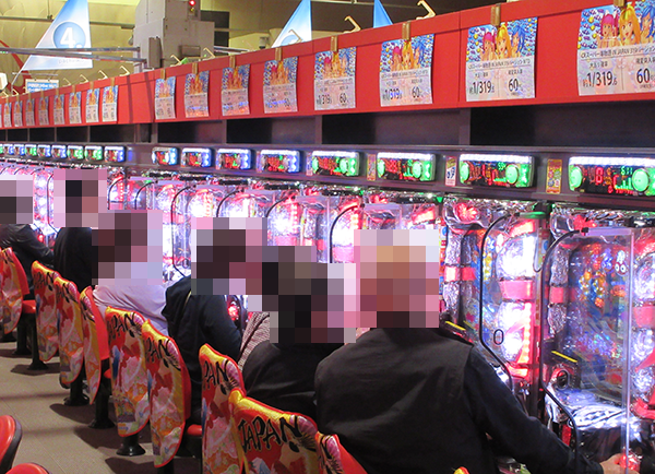 1円パチンコもほとんどの席が確保されており、コーナー全体に笑顔が広がっていた。