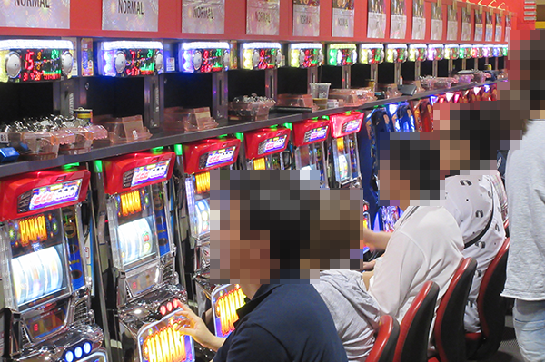 ホール内の様子をみてみると、各機種にたくさんのプレイヤーが集まっており、にぎやかな状況となっていた。