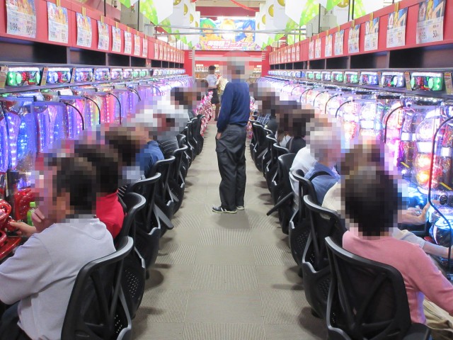 「CRAスーパー海物語 IN JAPAN with 桃太郎電鉄」を筆頭とした海物語シリーズが人気を集め、隣同士仲良く会話をしながら遊技したりと、和やかな雰囲気に包まれていた。