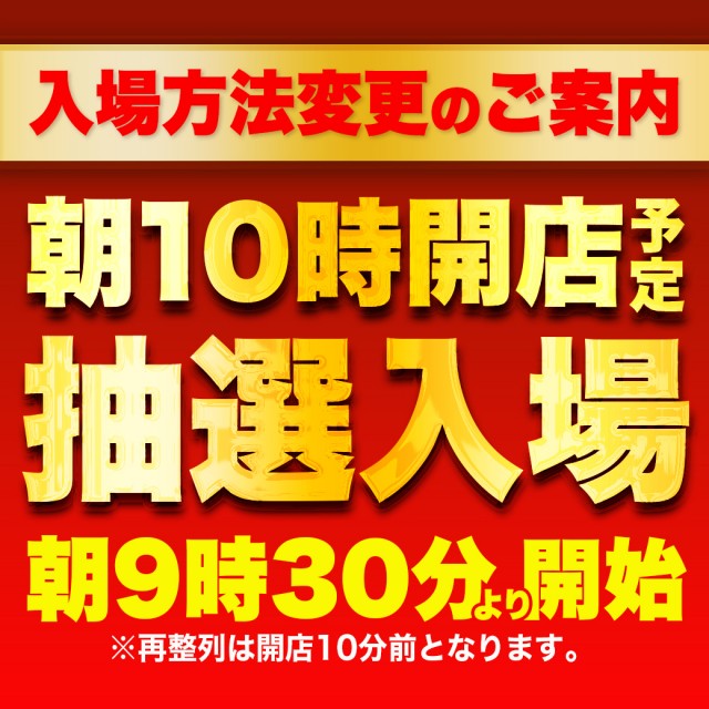 9:30から入場抽選を行います。※お時間の変更がある場合が御座いますので予めご了承くださいませ。 |