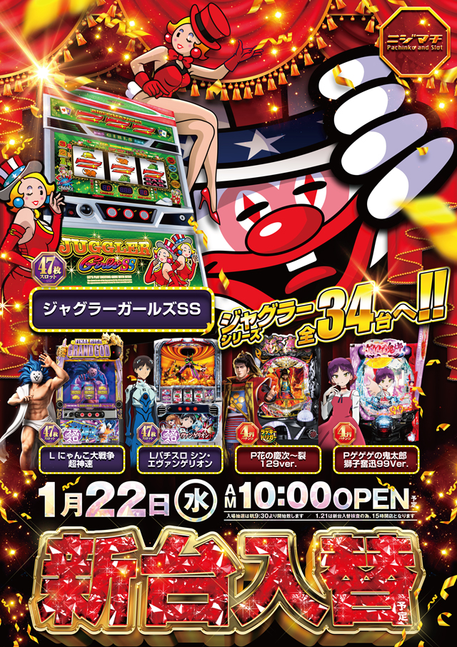 明日1月22日(水)「新台入替」朝10時開店★話題機導入!!