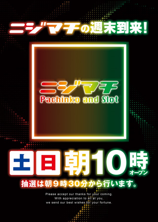 週末も「ニジマチ」へ!土日も朝10時よりOPEN!!