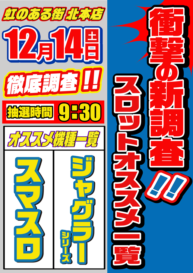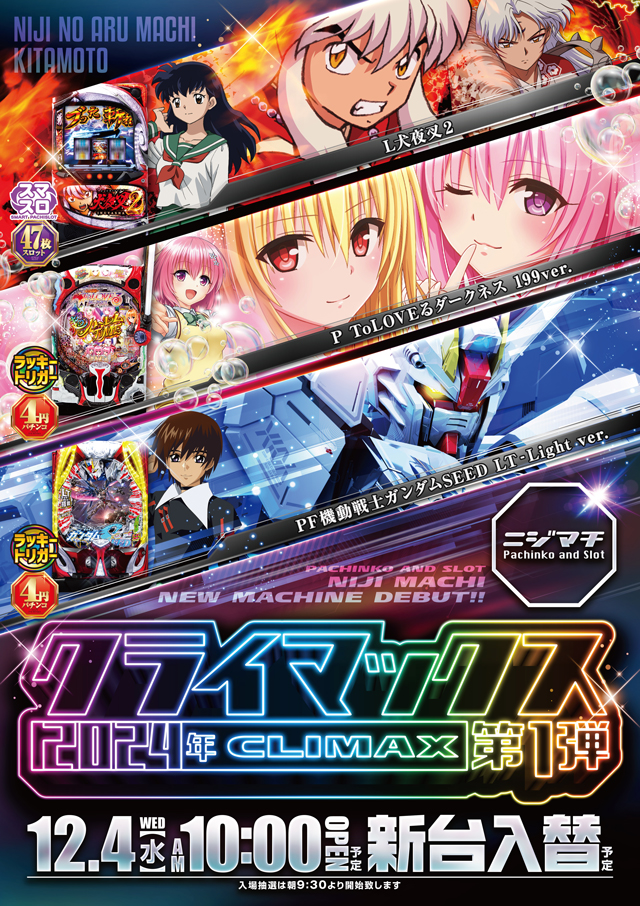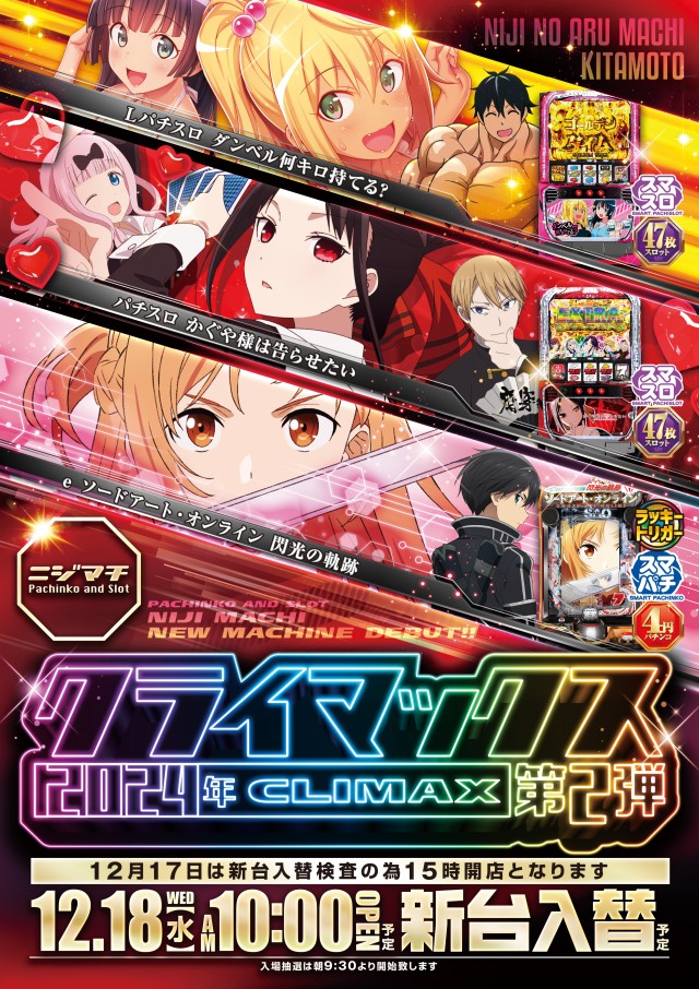 本日12月4日(水)「ニジマチ×新台入替」朝10時開店予定🎁