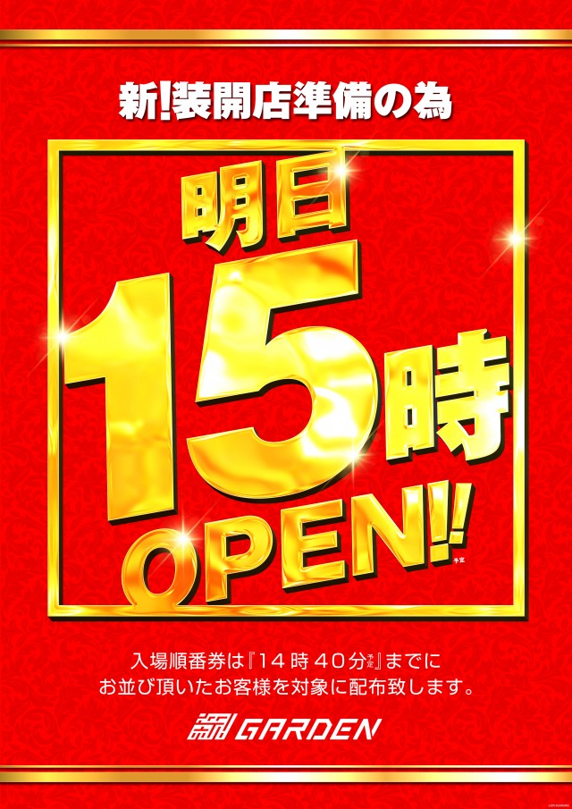 明日9月24日(土)10時開店予定!!6.5号機更に増台‼