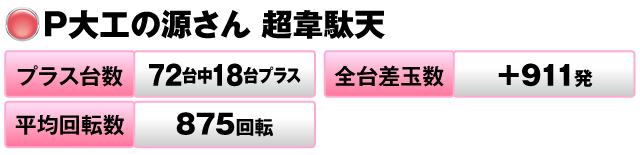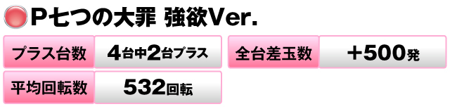 パチンコは、『P大工の源さん 超韋駄天』、『P七つの大罪 強欲Ver.』はプラスをマーク。