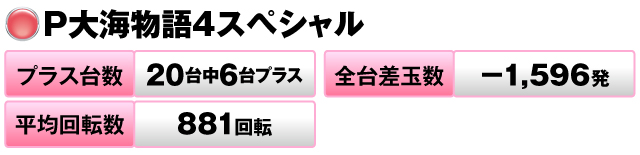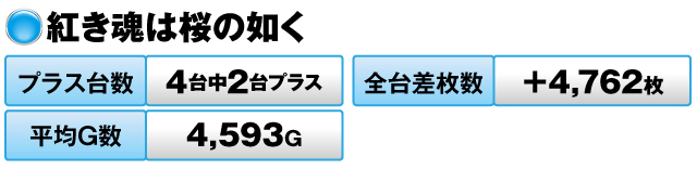 4台中2台がプラスで全台差枚数は+4,762枚を記録。
