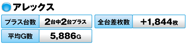 2台すべてがプラスで全台差枚数は+1,844枚だった。