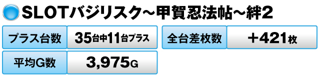 4台中2台がプラスで全台差枚数は+1,830枚をマークした。