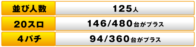 その結果、パチンコ全体では、360台中プラスは94台で、トータルの差玉数は大きくへこんでしまった。
