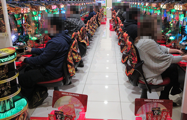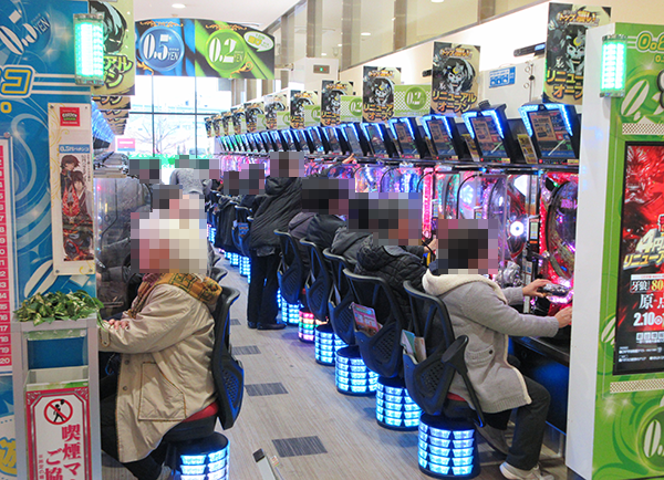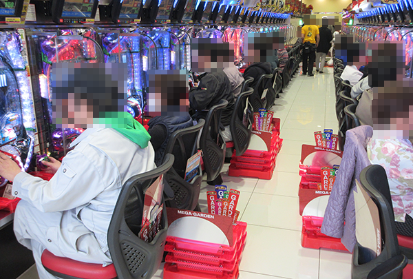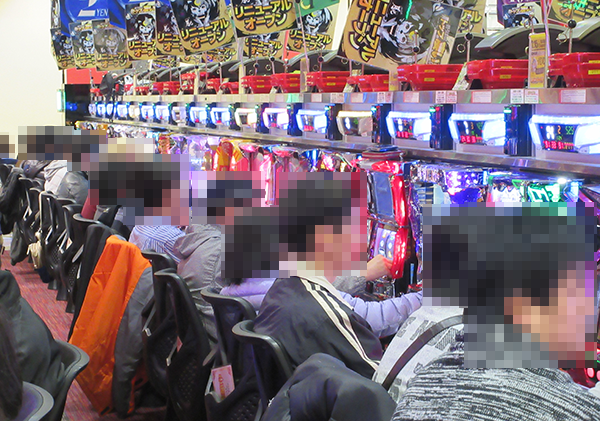 低貸し玉コーナーにも、たくさんの楽しげなプレイヤーの姿があった。