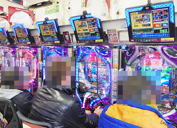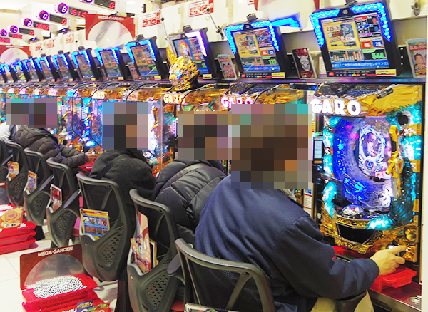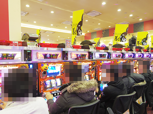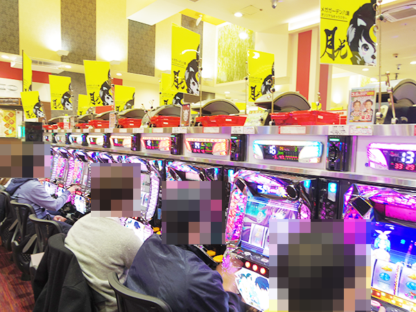 15時を過ぎた頃の4円パチンコでは、「CR牙狼 魔戒ノ花」や「CRフィーバー宇宙戦艦ヤマト-ONLY ONE-」が朝から大活躍。たくさんのプレイヤーが遊技を楽しんでおり、にぎやかな状況となっていた。