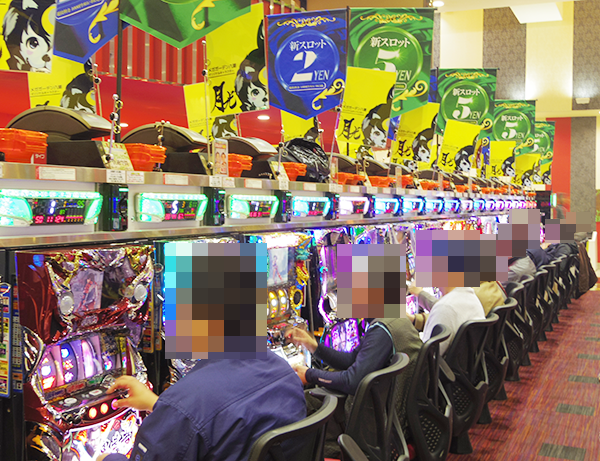 定番機種では、「パチスロ北斗の拳 強敵」や「バジリスク~甲賀忍法帖~絆」などが好評。なかには、狙い通りの遊技をできているようなプレイヤーもおり、きらびやかなシマとなっていた。