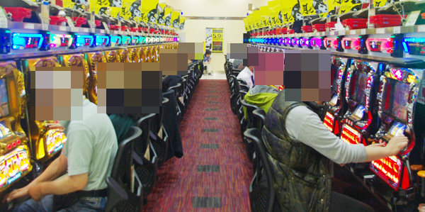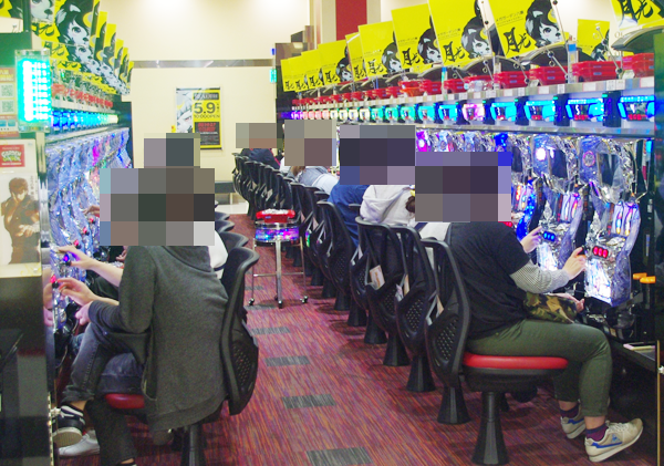 開店直後は低貸し玉のパチスロコーナーを中心に、さまざまな機種でプレイヤーたちが遊技を楽しんでいた。