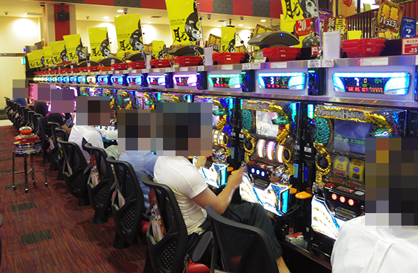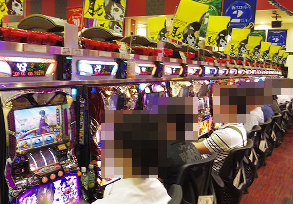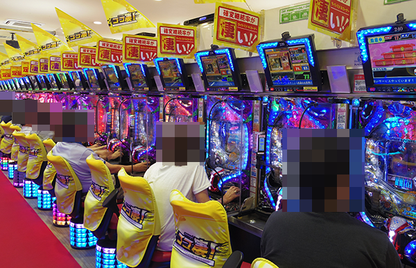 全台に計数機が設置されているパチンコの低貸し玉コーナーも盛り上がりは大きい。