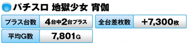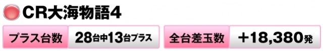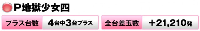 4台中3台がプラスで全台差玉数は+21,210発。