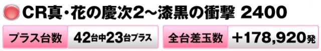 42台中23台がプラスで、全台差玉数は+178,920発を記録。