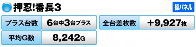 ちなみに操パネルの方も、6台中3台がプラスで全台差枚数+9,927枚、平均G数8,242Gと、番長パネルほどではないにしろ、十分な活躍を見せた。