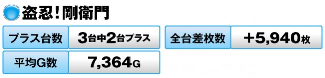 9台中プラスは3台だったものの、全台差枚数は+15,254枚を叩き出した。