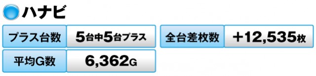 『ハナビ』は5台すべてがプラスで、全台差枚数は+12,535枚。