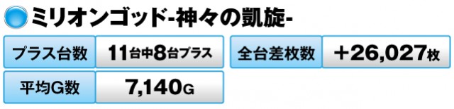 11台中8台がプラスで、全台差枚数は+26,027枚だった。
