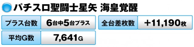 一方、『海皇覚醒』は6台中5台がプラスで全台差枚数は+11,190枚だった。