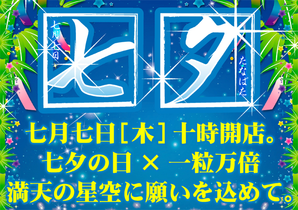 本日10時開店!【リニューアル⑥周年~七夕の日×一粒万倍~】